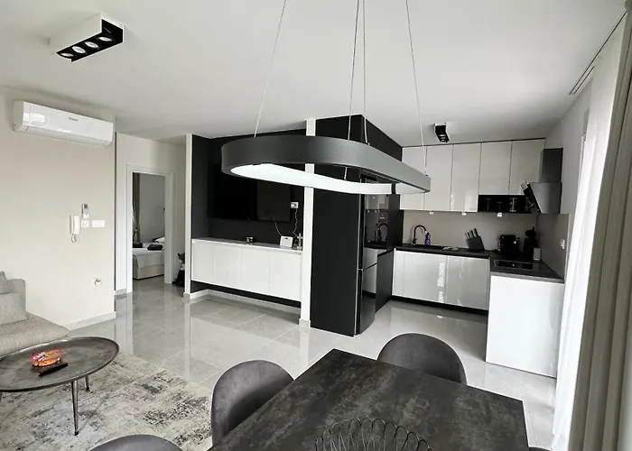 Samoposlužne sadržaje uključuju potpuno opremljenu kuhinju s mikrovalnom pećnicom, hladnjakom i posuđem, kao i aparatom za kavu/čaj. Autobusna stanica Skola II udaljena je 10 minuta hoda. Dostupnost vanjskog bazena osigurava ugodniji boravak.
